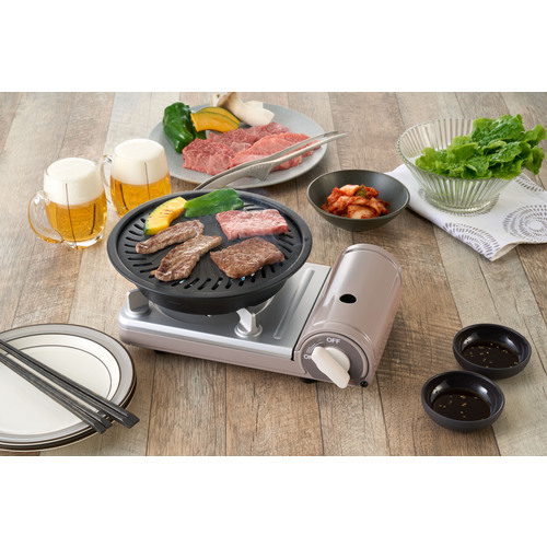 ●炎が外に広がりにくいタテ型炎口バーナーでムダ火を抑制、小型ながら鍋や焼き肉など十分に調理が可能です。