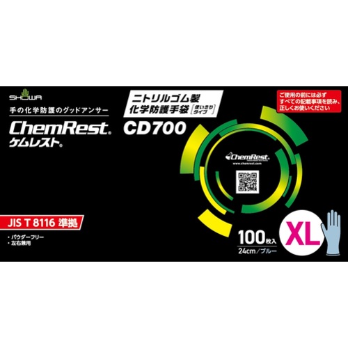 SHOWA 耐薬品手袋 ニトリルゴム製化学防護手袋 使いきりタイプ 100枚入 XLサイズ CD700-XL