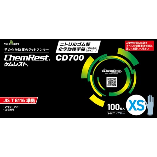 SHOWA 耐薬品手袋 ニトリルゴム製化学防護手袋 使いきりタイプ 100枚入 XSサイズ CD700-XS
