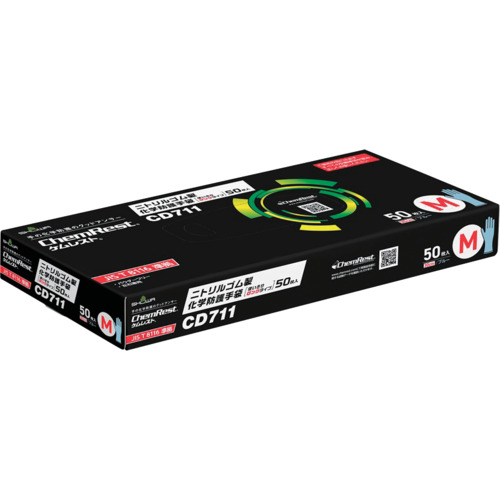 SHOWA 耐薬品手袋 ニトリルゴム製化学防護手袋 使いきりロングタイプ 50枚入 Mサイズ CD711-M