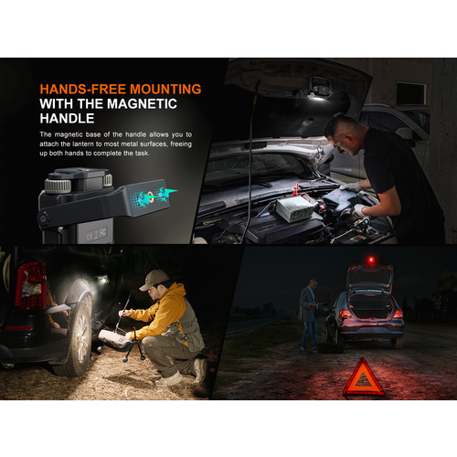 ●ランタンハンドルは、マグネットで金属面に取り付け可能です。