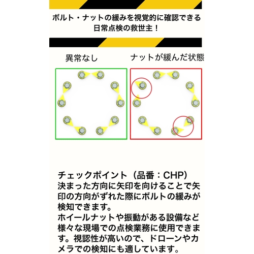 ●矢印の方向によりボルト・ナットの緩みを視覚的に素早く確認できます。