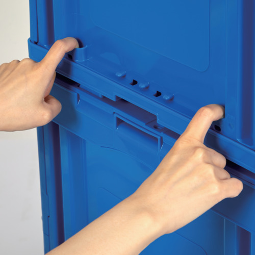 ●短側面に指がかけられるリブ(アシストロック機能)がついているので、段積み状態でも組付けが可能です。