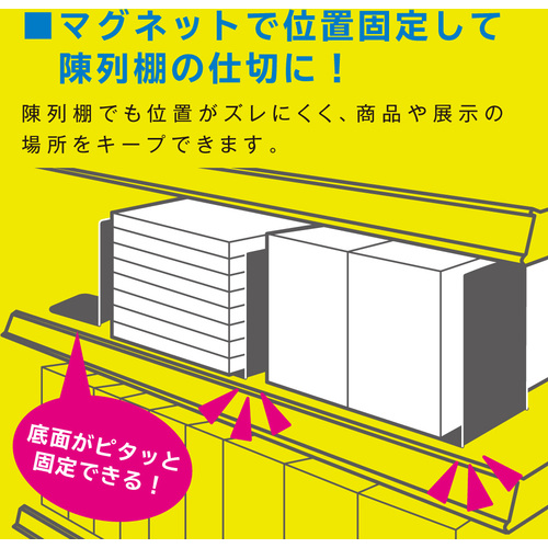 ●マグネットで位置を固定できるので、商品陳列時の仕切り板としてスーパーや小売店の店頭でも使える!