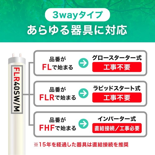 ●本製品はグロー式・ラピッド式安定器に工事不要で使用できる直管形LEDランプです。