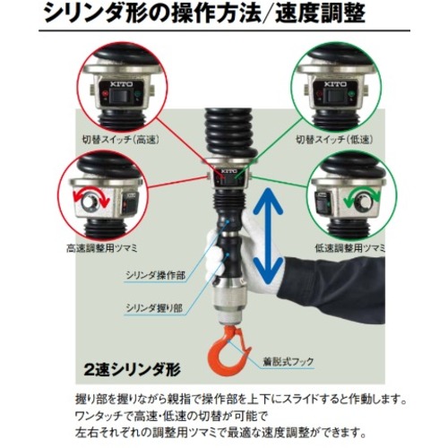 KITO 電気チェーンブロック キトーセレクト ED形 定格荷重100kg 揚程1.8m 単相200V2速シリンダ形 【選べる定格荷重】 EDXC10SD EDXC10SD