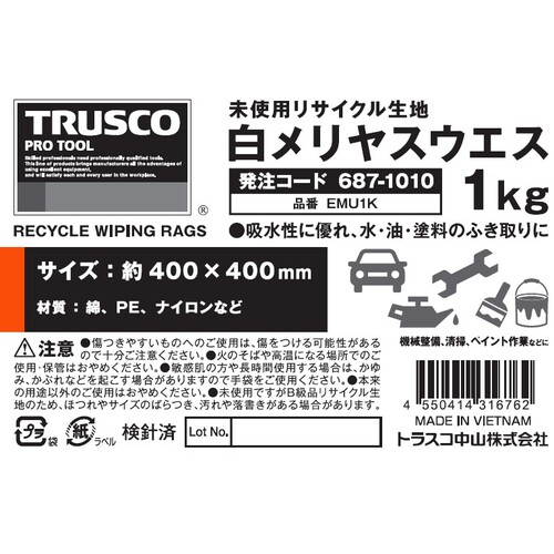 TRUSCO 白メリヤスウエス 未使用リサイクル生地 1kg EMU1K