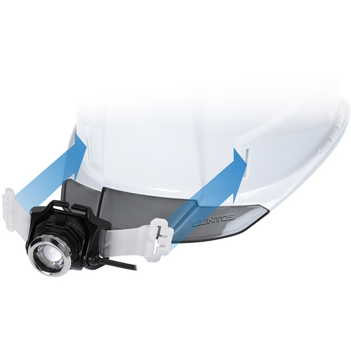 ●ヘッドライトを直接装着することでズレるストレスから解放、またケーブルホルダー搭載で社名が隠れず安全性も向上します。