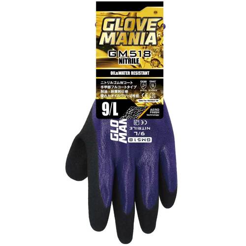 ●ニトリルゴムを手の甲までコーティングしており防水、防汚効果があります。