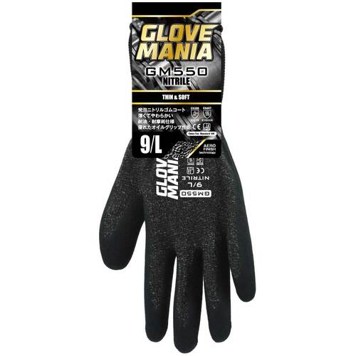 9. 川西 GM550 グローブマニア ニトリル ブラック Mサイズ GM550BK-M