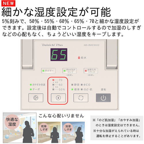 ●50~70%の5%単位でお好みの湿度を設定できます。