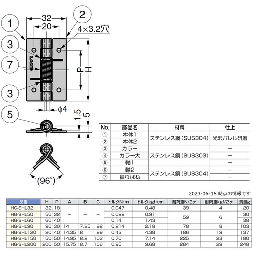 SUGATSUNE (170045744)HG-SHL200ステンレス鋼製スプリング蝶番 HG-SHL200