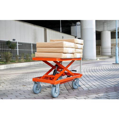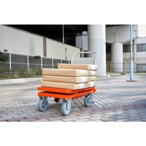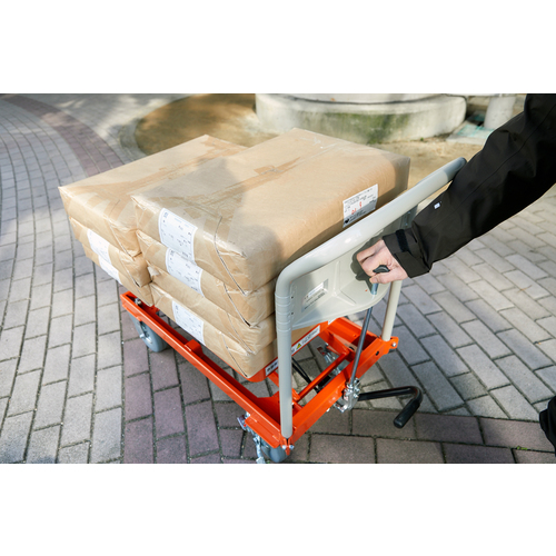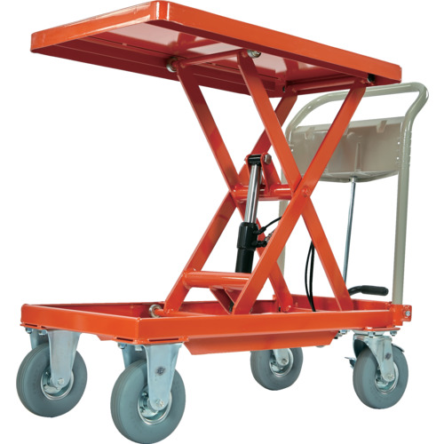 TRUSCO ハンドリフタ(オフロード仕様) 均等荷重250kg 500X800 オレンジ Φ175ノーパンクタイヤ仕様 HLFA-S250-OR