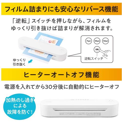 ●A3サイズまで対応し、4本ローラーで仕上がりの反りが抑えられるので、しっかりきれいに圧着されます。