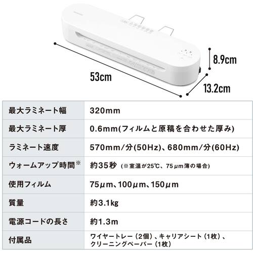 ●最大ラミネート厚さ(mm):0.6