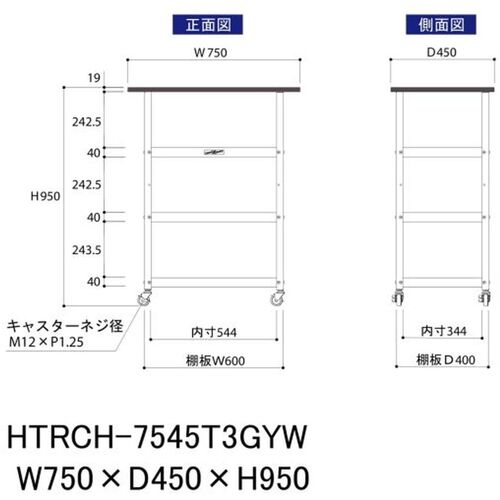 ヤマテック 天板付き150ワゴン 棚板3枚仕様 RoHS2指令対応塩ビシート天板 W750×D450×H950mm ライトグレー/シルキーホワイト HTRCH-7545T3GYW