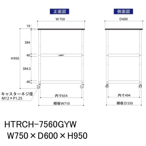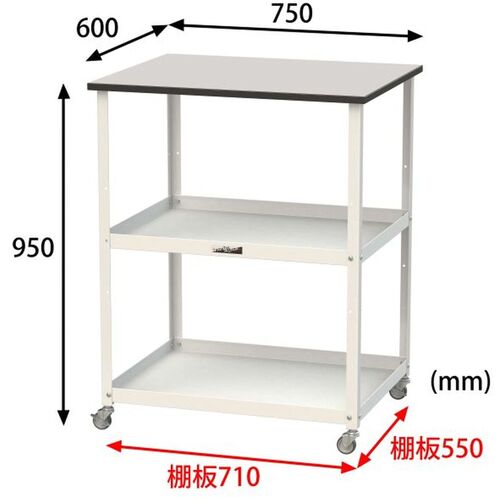 ヤマテック 天板付き150ワゴン 棚板2枚仕様 RoHS2指令対応塩ビシート天板 W750×D600×H950mm ライトグレー/シルキーホワイト HTRCH-7560GYW