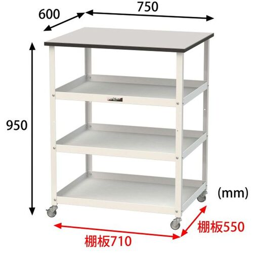 ヤマテック 天板付き150ワゴン 棚板3枚仕様 RoHS2指令対応塩ビシート天板 W750×D600×H950mm ライトグレー/シルキーホワイト HTRCH-7560T3GYW