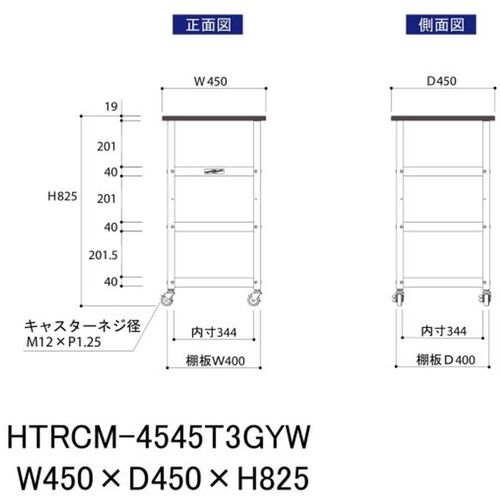 ヤマテック 天板付き150ワゴン 棚板3枚仕様 RoHS2指令対応塩ビシート天板 W450×D450×H825mm ライトグレー/シルキーホワイト HTRCM-4545T3GYW