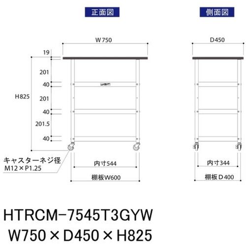ヤマテック 天板付き150ワゴン 棚板3枚仕様 RoHS2指令対応塩ビシート天板 W750×D450×H825mm ライトグレー/シルキーホワイト HTRCM-7545T3GYW