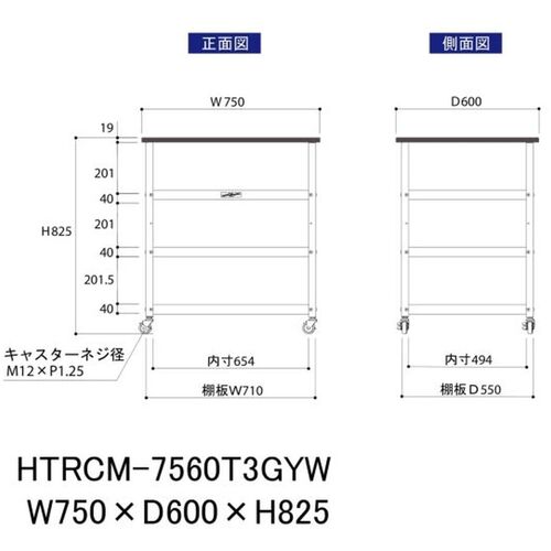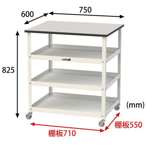ヤマテック 天板付き150ワゴン 棚板3枚仕様 RoHS2指令対応塩ビシート天板 W750×D600×H825mm ライトグレー/シルキーホワイト HTRCM-7560T3GYW