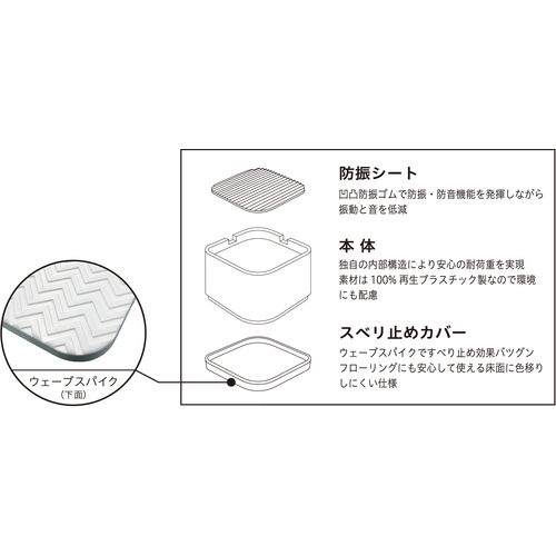 ●1段で約45mm[[の2乗]]段重ねで約90mmかさ上げできます。