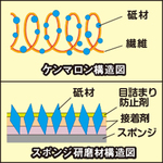 ●ケンマロンは、ナイロン不織布に砥粒を塗布し、優れた研削性と目詰まりしにくい構造になっています。