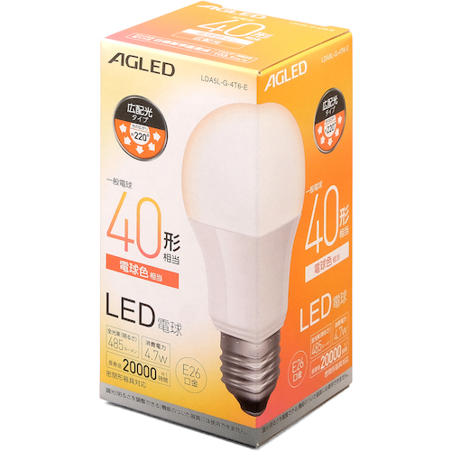 IRIS 522227 LED電球 E26 広配光 40形相当 電球色 (20000時間) LDA5L-G-4T6-E