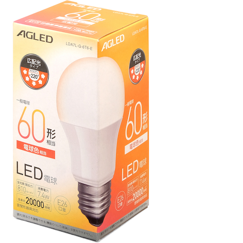IRIS 522229 LED電球 E26 広配光 60形相当 電球色 (20000時間) LDA7L-G-6T6-E