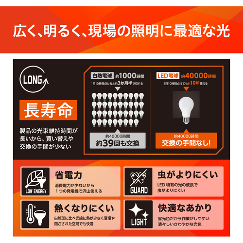 ●優れた放熱性で丈夫なアルミダイキャスト素材使用。