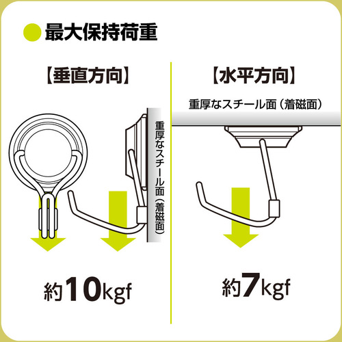 ●コンパクトサイズながら強い保持力を実現。フックでスチール壁面を有効活用。