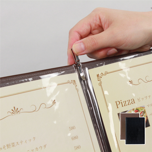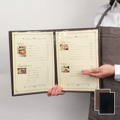 OP メニューファイル レザー調 A4 4頁 黒 MN-153-BK