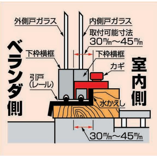 ●鍵の脱着が可能なサッシ・窓用補助錠
