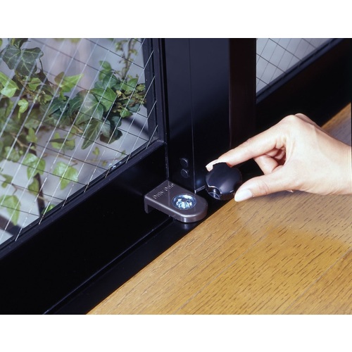 ●サッシに置き、つまんで回すだけでロックできる補助錠です。