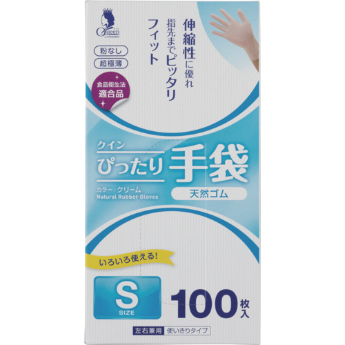 クイン ぴったり手袋 天然ゴム 100枚入 S NR0501PFNBS