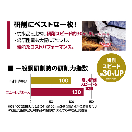 ●従来品と比較し研削スピード約30%UPしました。 ※メーカー実験値