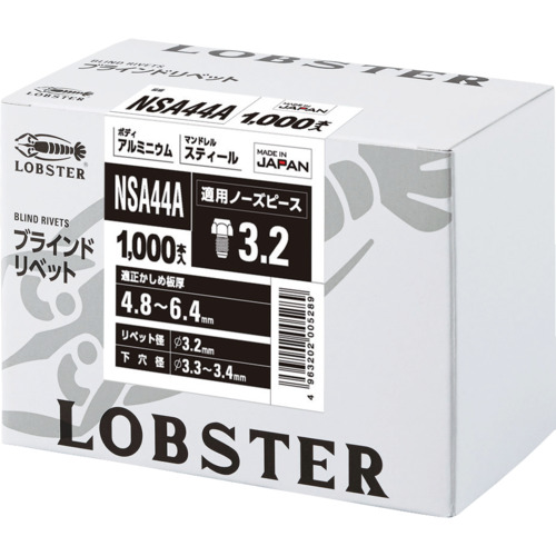 エビ ブラインドリベット(アルミ/スティール製)4-4(1000本入) 箱入 NSA44A