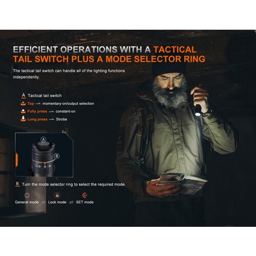 ●タクティカルテールスイッチとモードセレクターリングにより、正確で素早いモード選択が可能です。