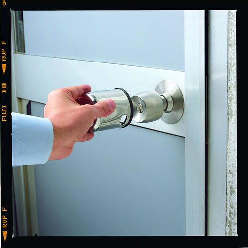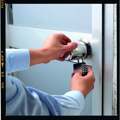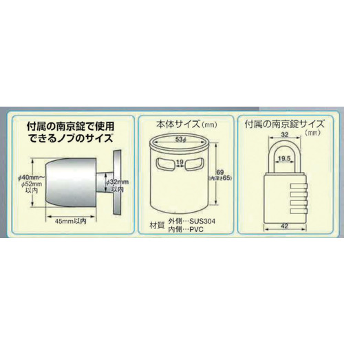 ●カップをドアノブにかぶせて、南京錠をロックするだけで簡単にピッキングを防止します。