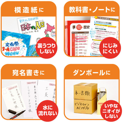 ●水性顔料マーカーなのでニオイもなく、乾けば耐水性、耐光性に優れています。