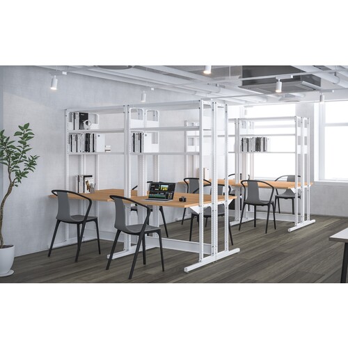 ●業務資料の整理整頓や事務作業に最適なデスク付きの棚です。