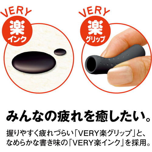 ●握りやすく疲れづらい「VERY楽グリップ」と、なめらかな書き味の「VERY楽インク」を採用した油性ボールペンです。