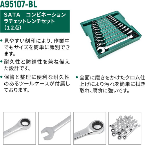 9. SATA コンビネーションラチェットレンチセット(12点) ST09040-02