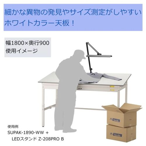 ヤマテック ワークテーブル150シリーズ 傾斜天板タイプ W1800×天板D900×H652~H952mm シルキーホワイト SUPAK-1890-WW