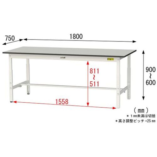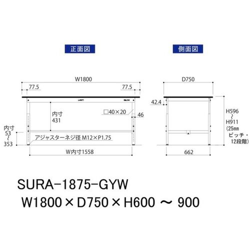 ヤマテック ワークテーブル150シリーズ 高さ調整タイプ RoHS2指令対応塩ビシート天板 W1800×D750×H600~H900mm ライトグレー/シルキーホワイト SURA-1875-GYW