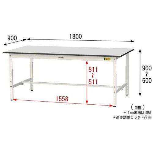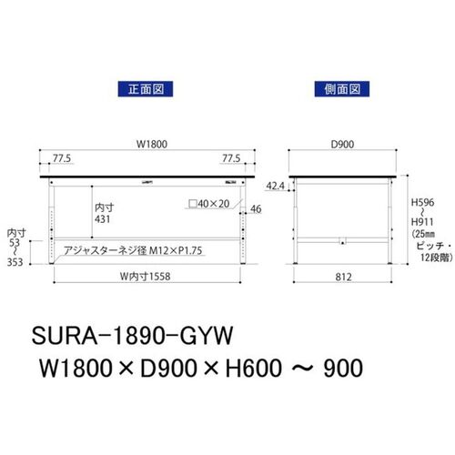 ヤマテック ワークテーブル150シリーズ 高さ調整タイプ RoHS2指令対応塩ビシート天板 W1800×D900×H600~H900mm ライトグレー/シルキーホワイト SURA-1890-GYW