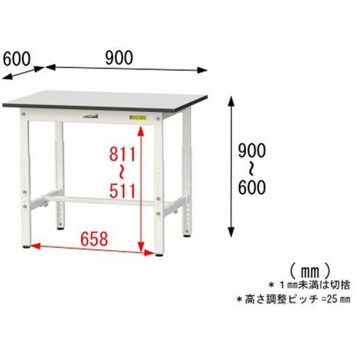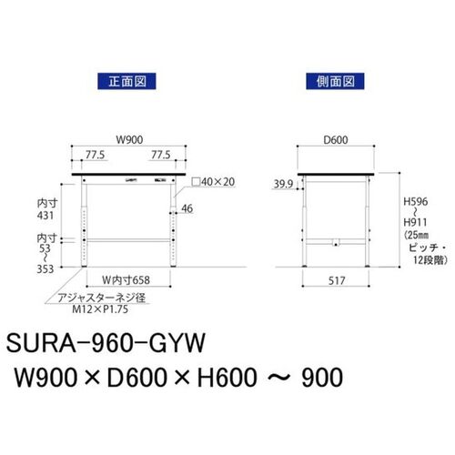 ヤマテック ワークテーブル150シリーズ 高さ調整タイプ RoHS2指令対応塩ビシート天板 W900×D600×H600~H900mm ライトグレー/シルキーホワイト SURA-960-GYW