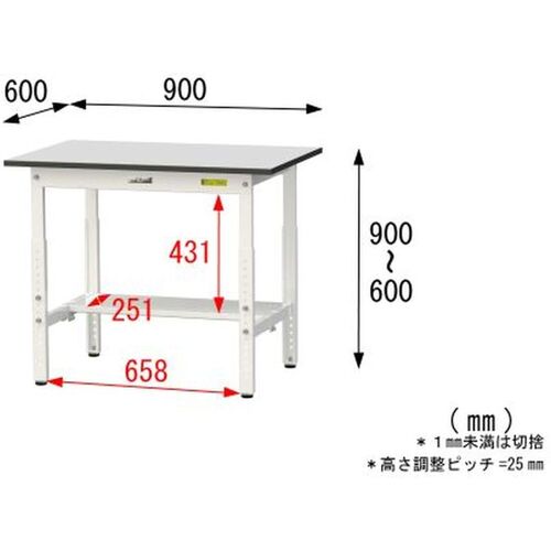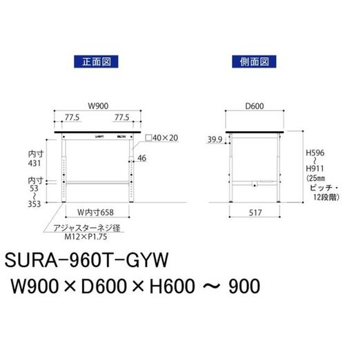 ヤマテック ワークテーブル150シリーズ 高さ調整タイプ 半面棚板付 RoHS2指令対応塩ビシート天板 W900×D600×H600~H900mm SURA-960T-GYW