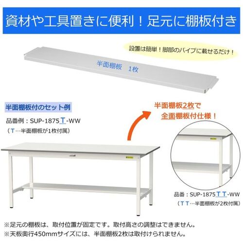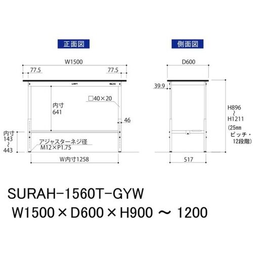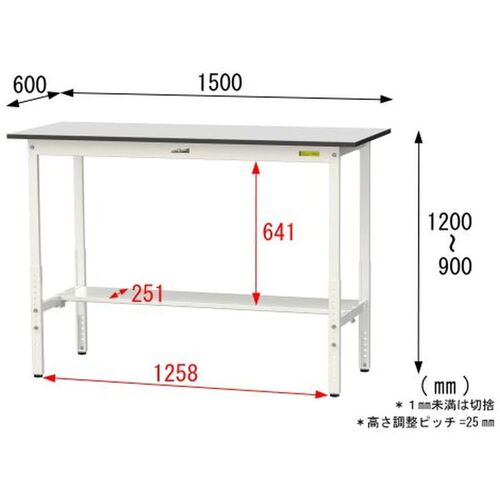 ヤマテック ワークテーブル150シリーズ 高さ調整タイプ 半面棚板付 RoHS2指令対応塩ビシート天板 W1500×D600×H900~H1200mm SURAH-1560T-GYW