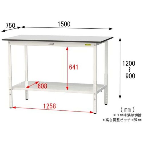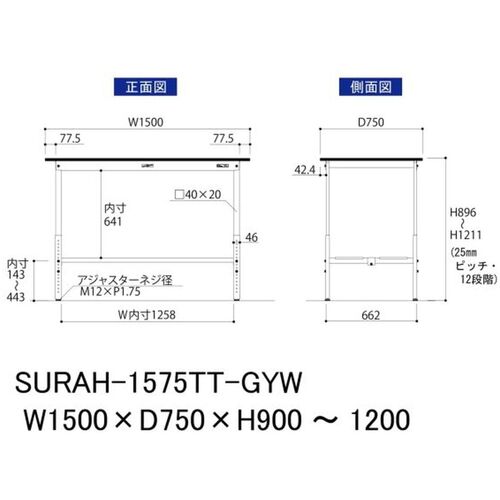ヤマテック ワークテーブル150シリーズ 高さ調整タイプ 全面棚板付 RoHS2指令対応塩ビシート天板 W1500×D750×H900~H1200mm SURAH-1575TT-GYW